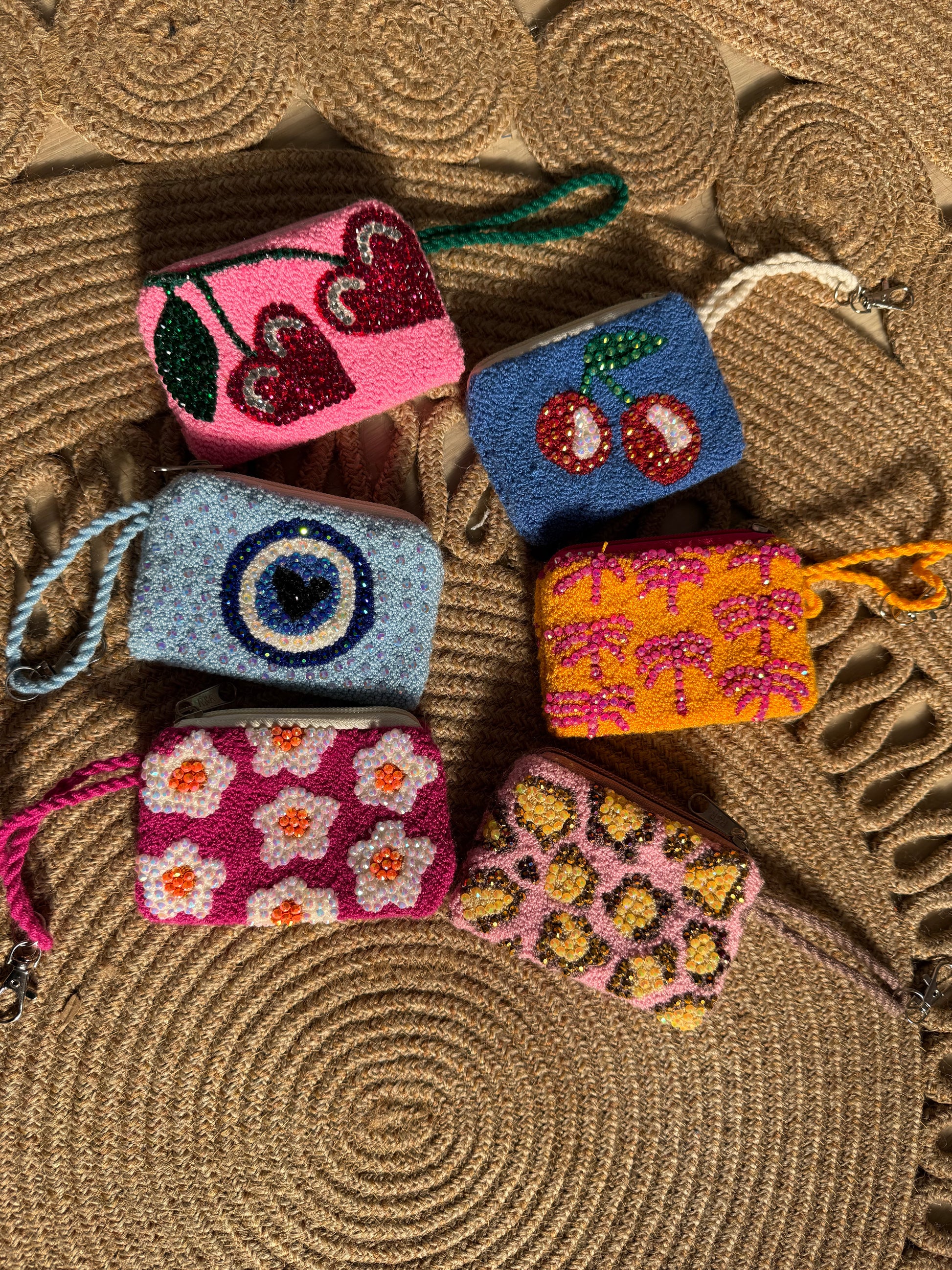 Decorated Hand-Embroidered Evil Eye Coin Purses – Unique Charm Wallets Full of Protection & Color