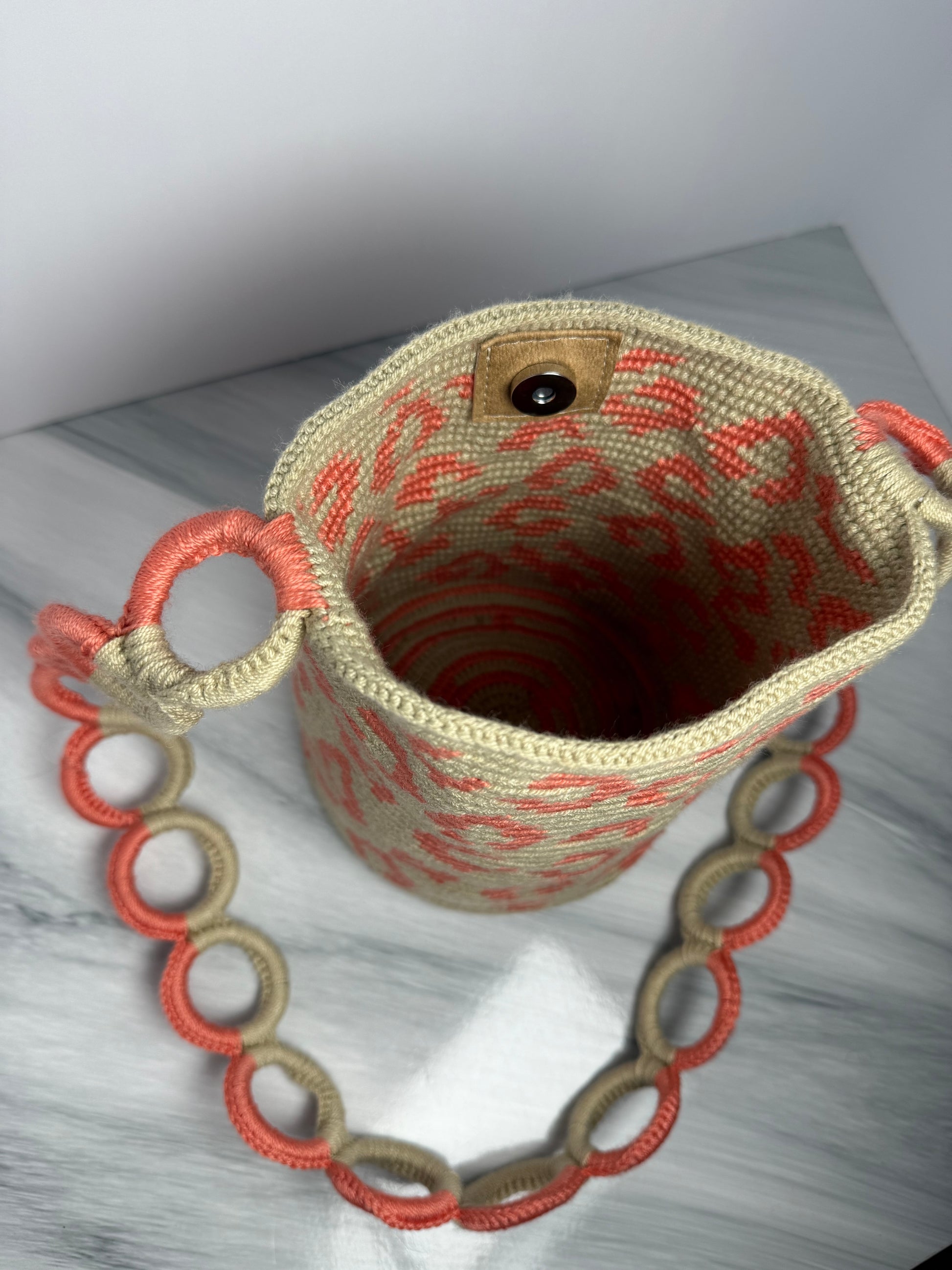 This handcrafted animal print cylindrical bag is a bold and refined statement piece, carefully woven by skilled artisans. Its design blends traditional craftsmanship with modern trends, making it the perfect accessory to elevate any outfit.