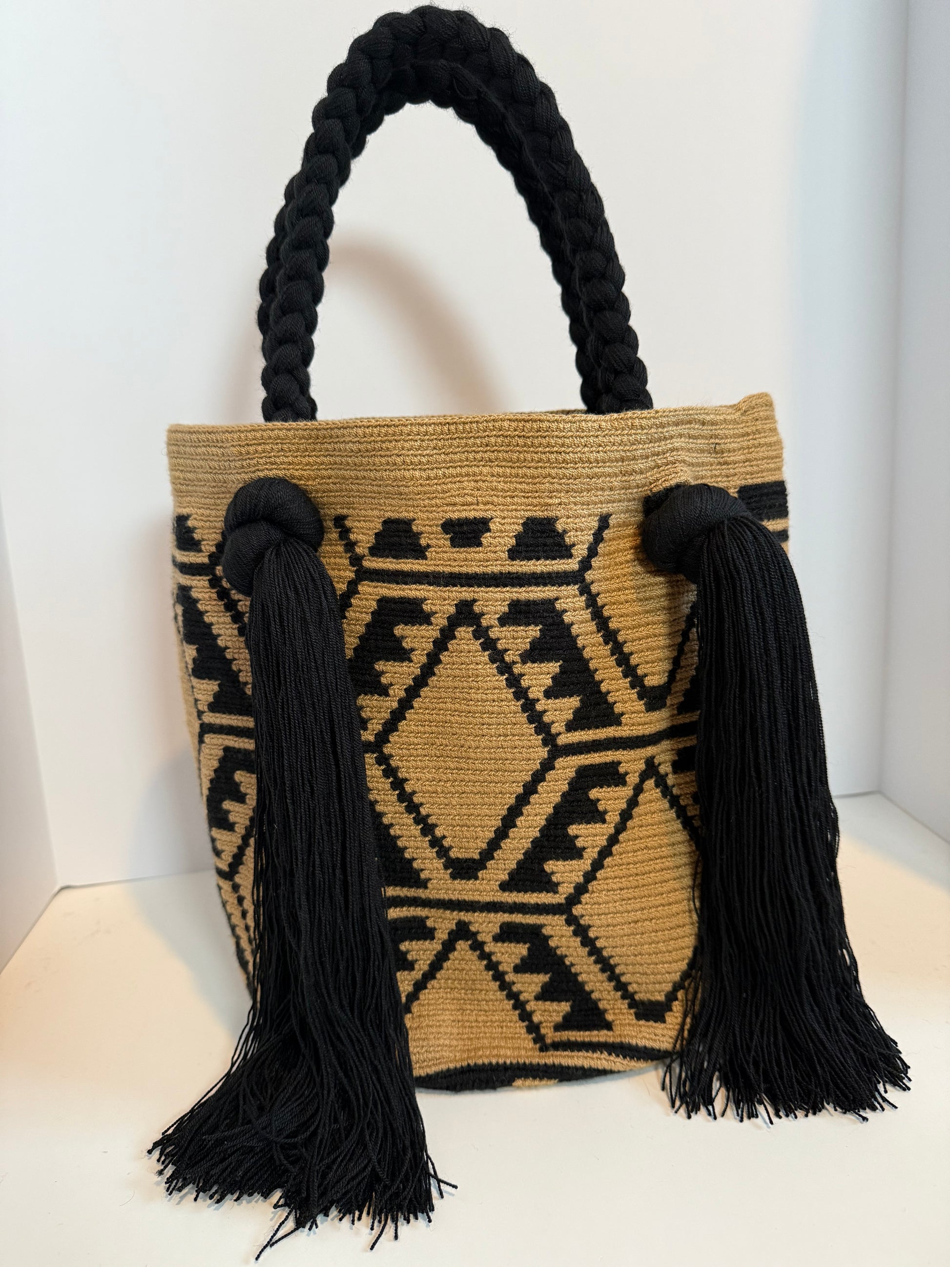 Tote shoulder Bag Wayuu Lining and sliding black and beige