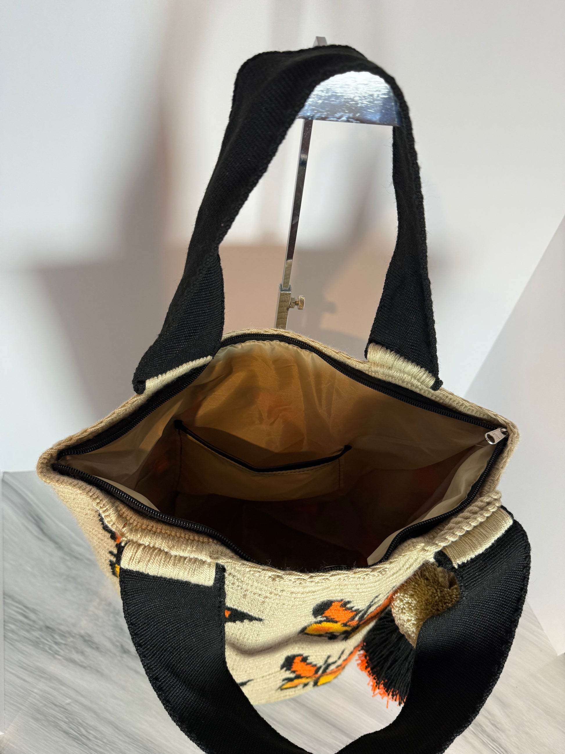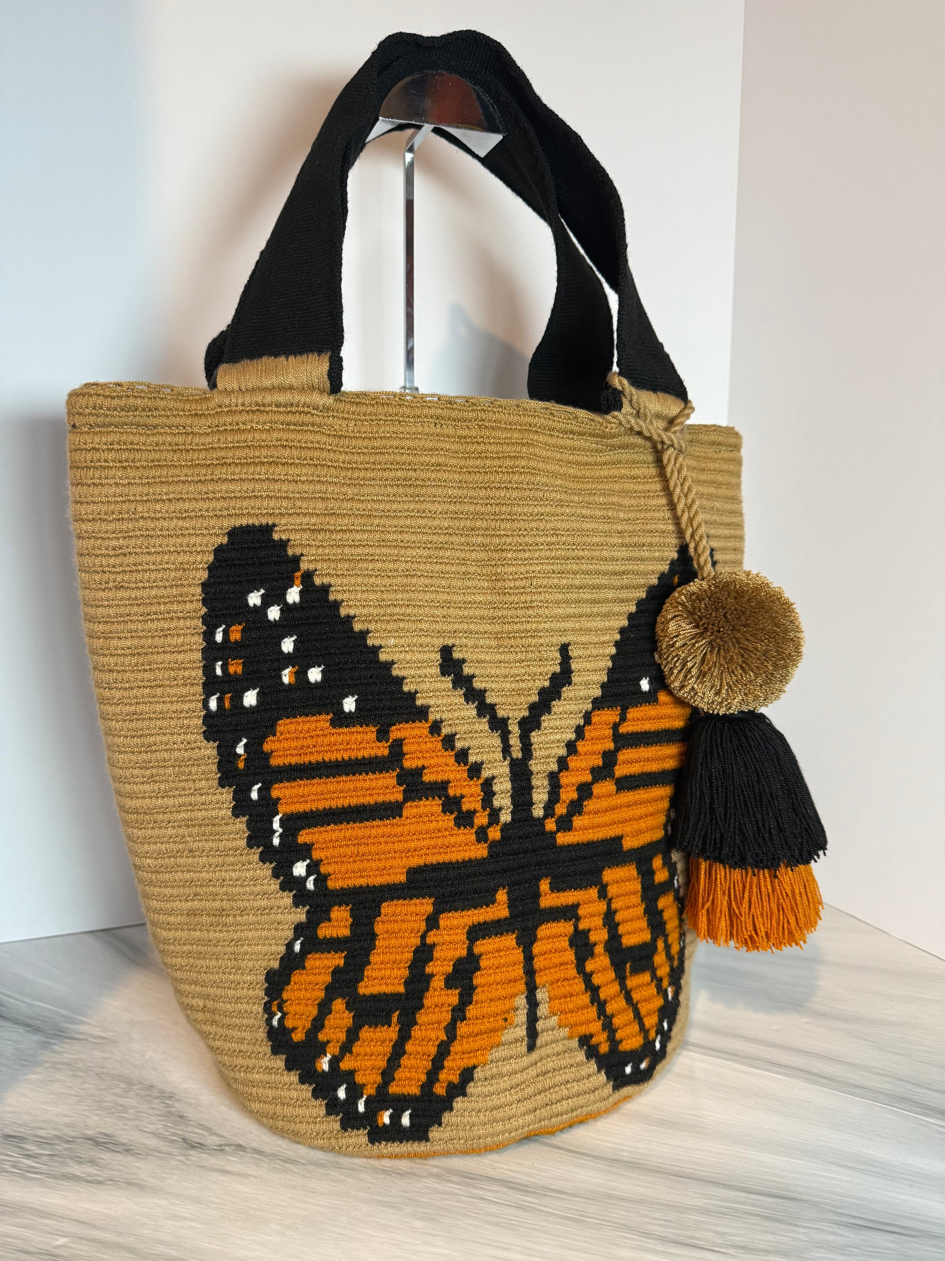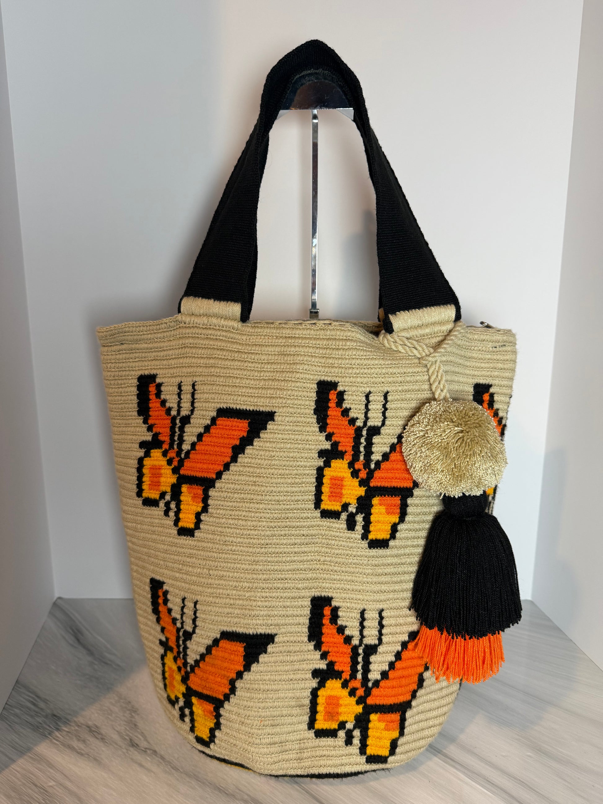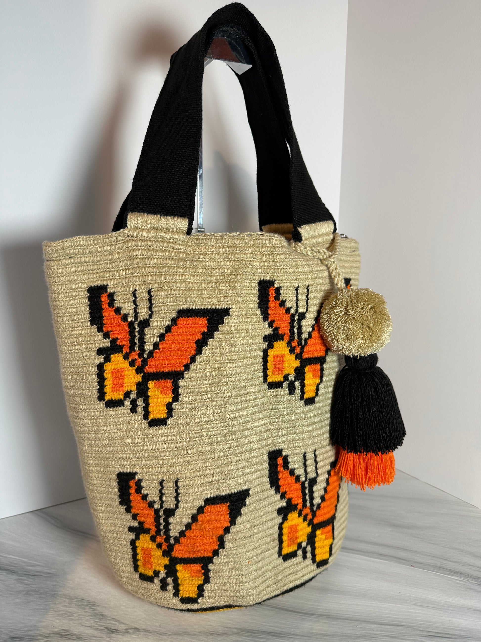 Wayuu XL Butterfly Handwoven Tote Bag Inner lining, sliding and ornament (pompom)